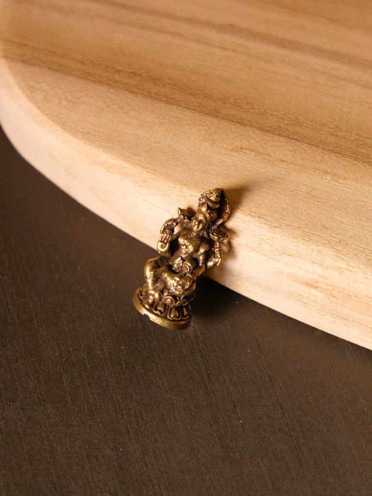 A small, miniature bronze statue of Shiva, ideal as a protective amulet. Its tiny size makes it perfect for carrying with you at all times: in your handbag, pocket or on your key ring, accompanying you wherever you go.