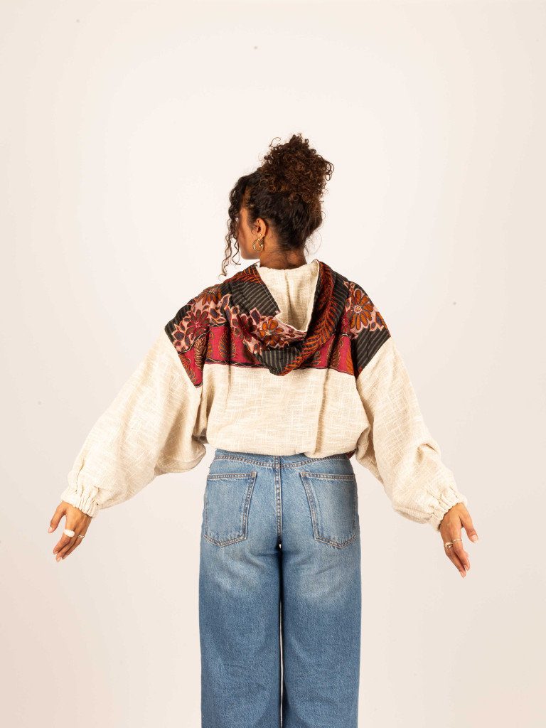 Handcrafted in a soft 100% white cotton fabric and decorated in this case with very special embroidered saree fabrics.