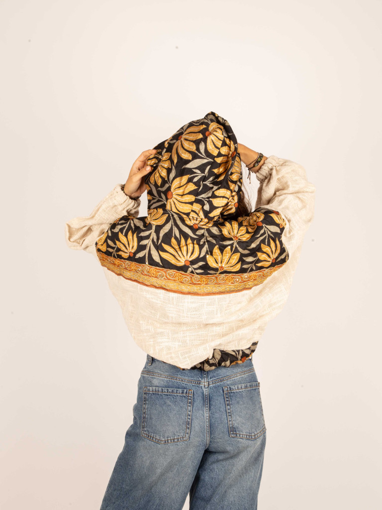 Handcrafted in a soft 100% white cotton fabric and decorated in this case with very special embroidered saree fabrics.