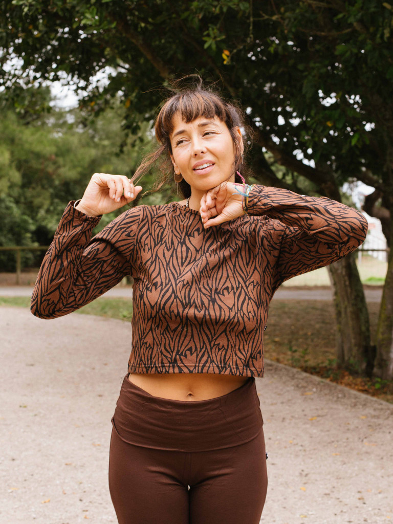 Our Urban Roots T-shirt stands out for its earthy brown tone with a delicate black print inspired by the organic textures of the jungle.Made from a soft, stretchy 95% cotton and 5% Lycra fabric, it offers exceptional comfort and freedom of movement throughout the day.
