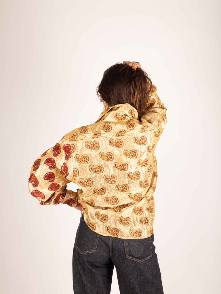 The Asha Shirt is a unique garment, designed from recycled sarees, fusing tradition and sustainability into one style. Its relaxed, flowing cut, combined with vibrant colours and ethnic patterns, makes this shirt a versatile choice for any occasion.