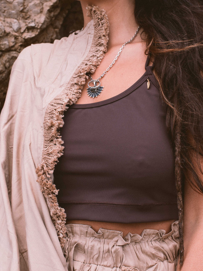 Made in brown fabric, 95% cotton and 5% lycra that provides an incredible touch and better comfort and adaptation to the body.