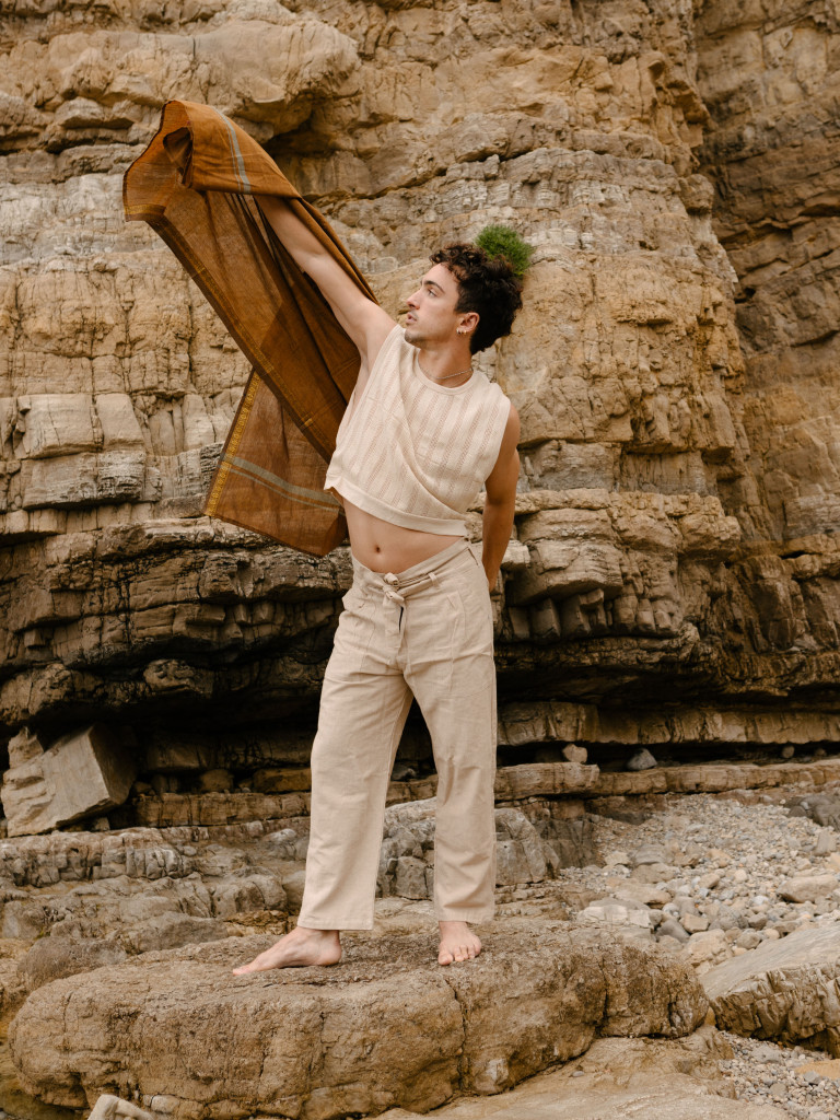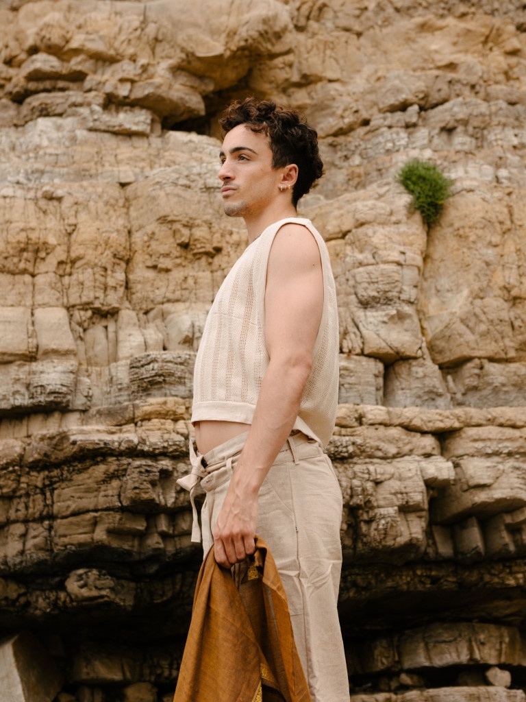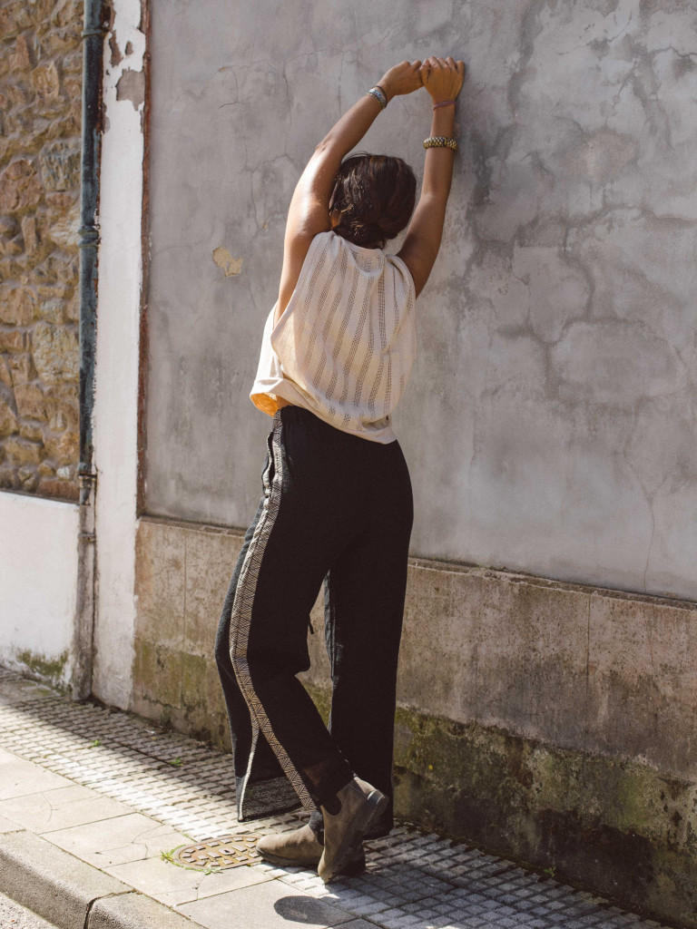 With openings on the sides, combine it with a top or with a bra to give it a touch.