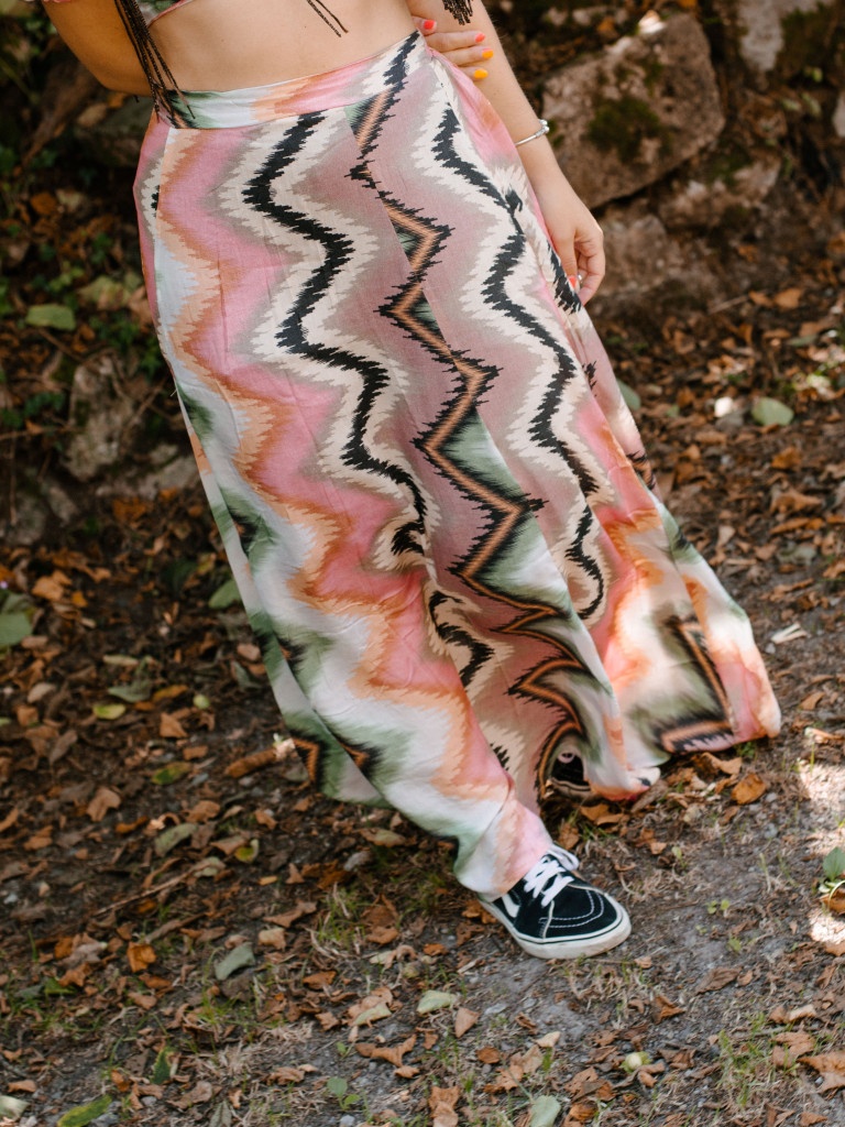 This new set consists of a top and skirt handmade in viscose fabric with an ethnic print.