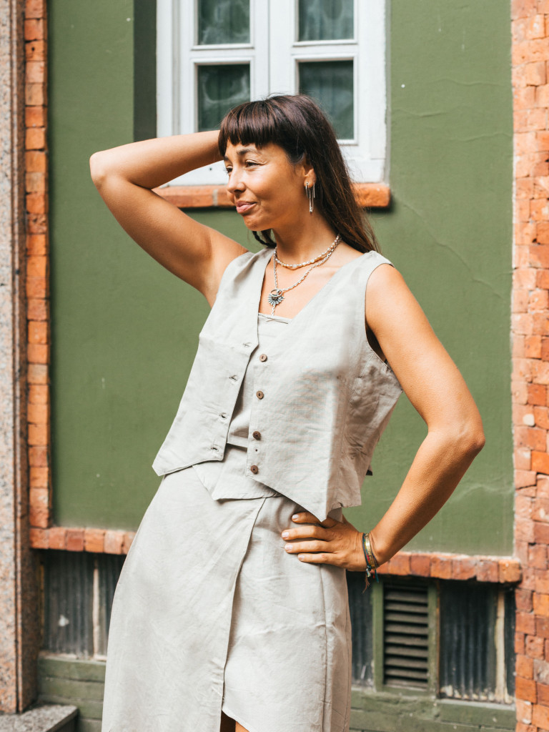 Our Acid trousers are handmade from a natural cotton and linen blend fabric, a cool and lightweight fabric.
