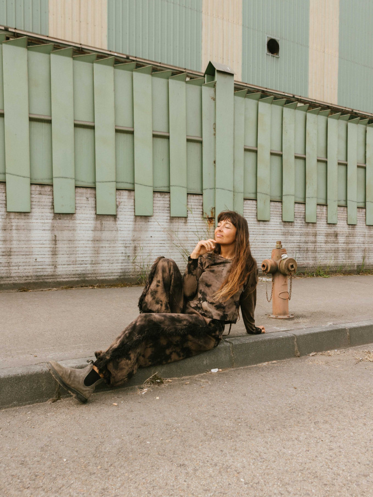 Handmade with cotton sweatshirt fabric and tie-dye technique using natural dyes.