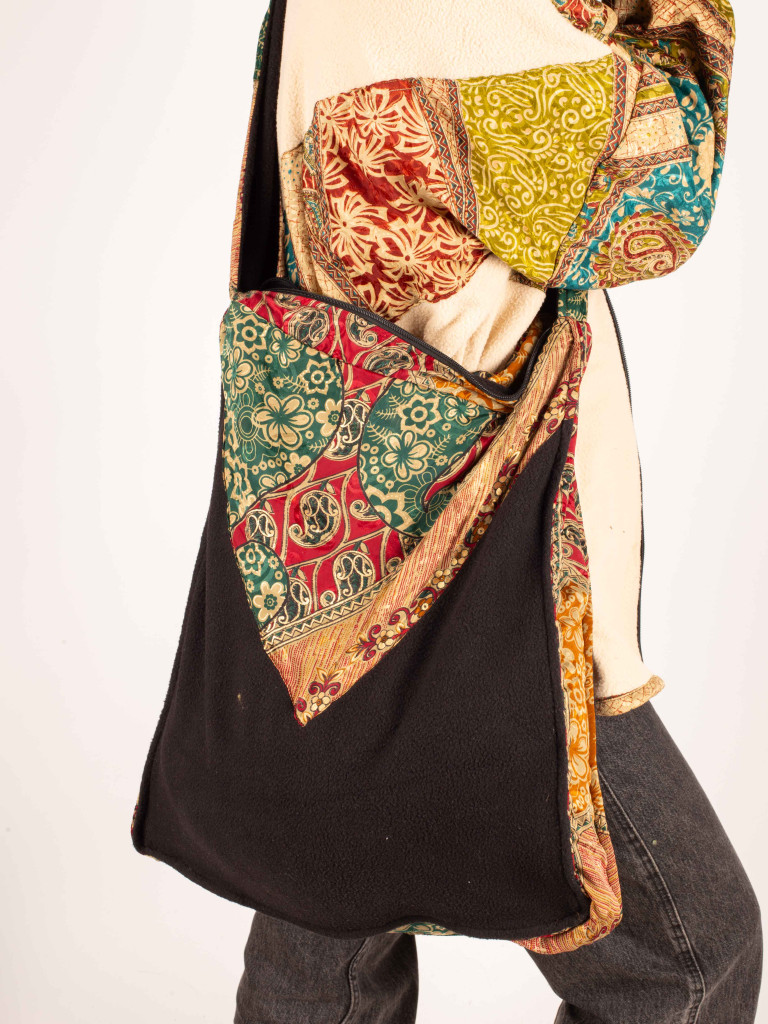 Hemos seleccionado telas tradicionales indias recicladas para combinarlos con el tejido polar en color negro.