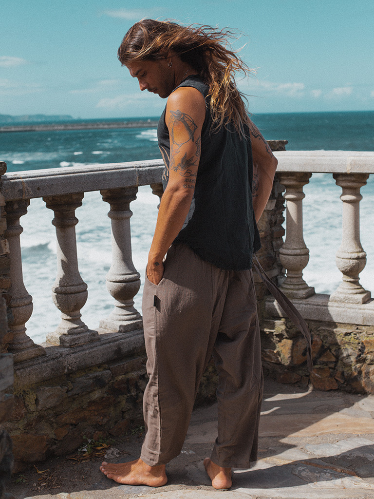 Nuestra nueva cami de yute tiene un estampado creado con Handblock en la parte delanteral y tiene el escote con detalles deshilachados.