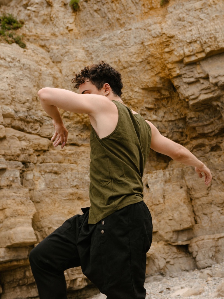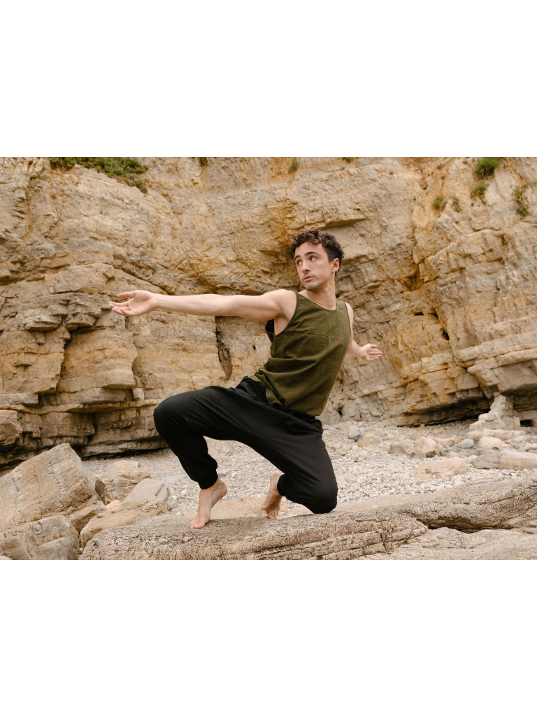 Está confeccionada a mano en tejido natural de algodón 100%, muy finapara estar bien fresquito y  teñido a mano con productos naturales en un color verde botella