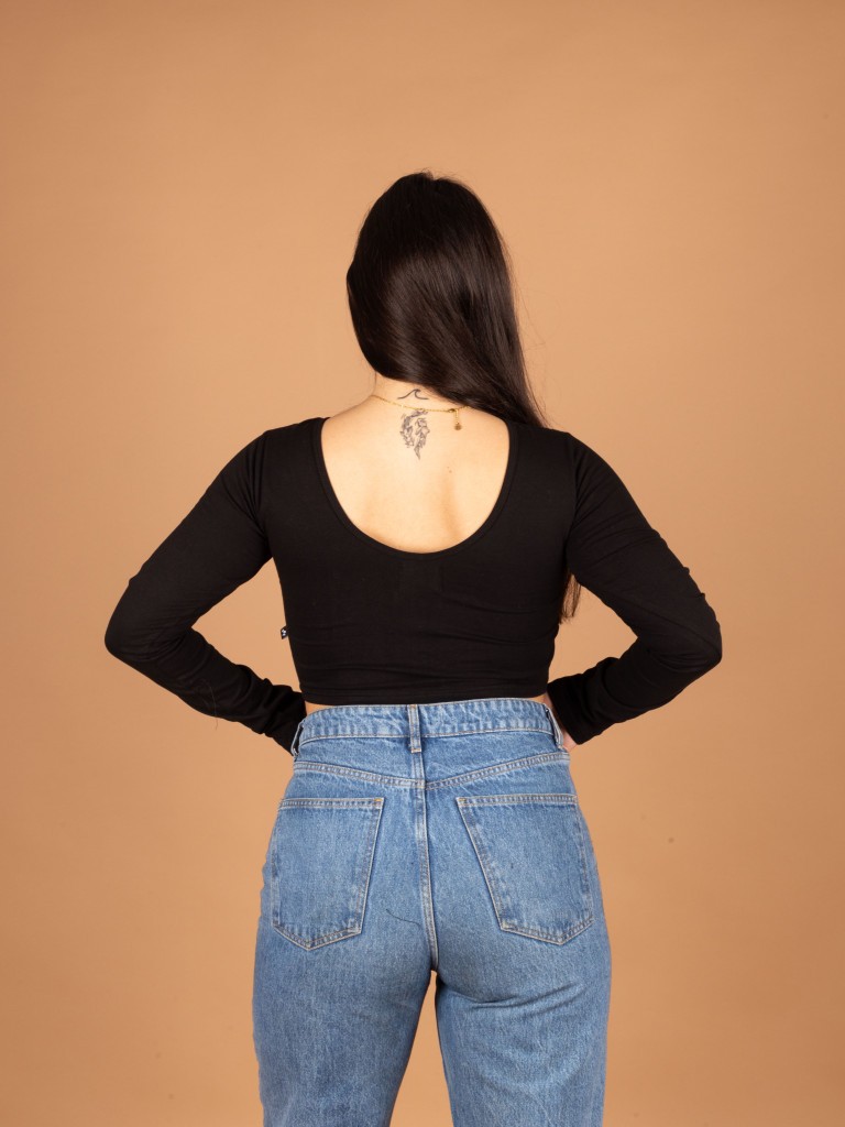 Este nuevo modelo combina tejido de  95% algodón y 5%lycra en un color negro con sarees indios seleccionados uno a uno con mucho amor.