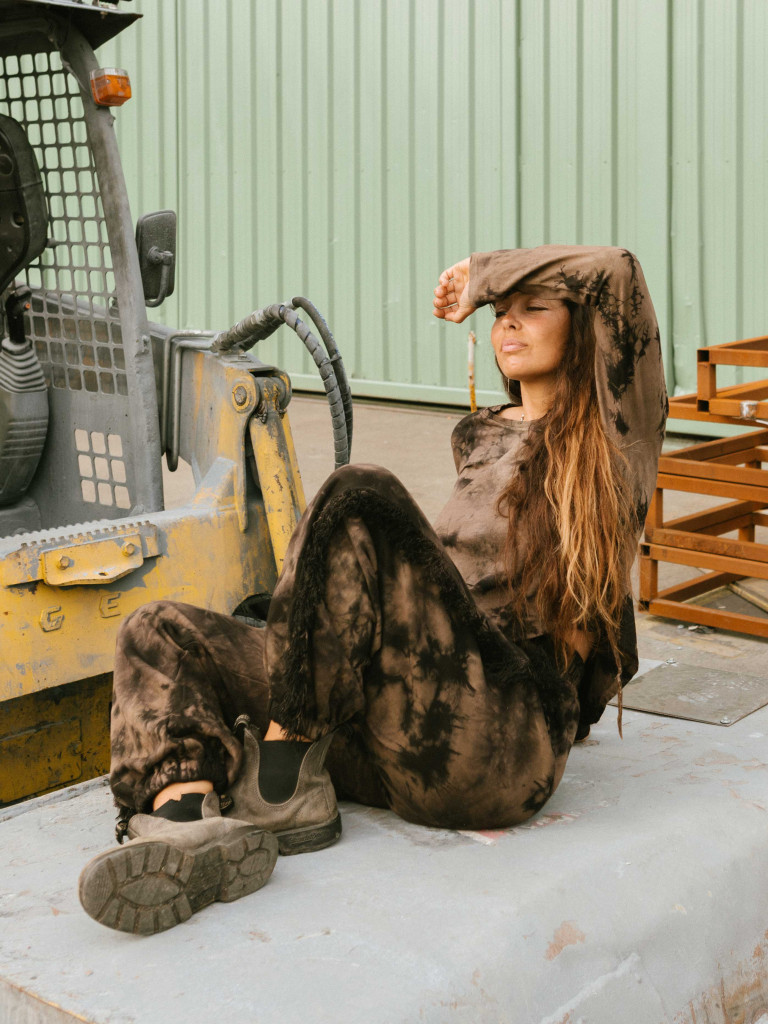 Confeccionado a mano con tejido de 95 % algodón y 5% lycra, y técnica Tie Dye con tintes naturales.