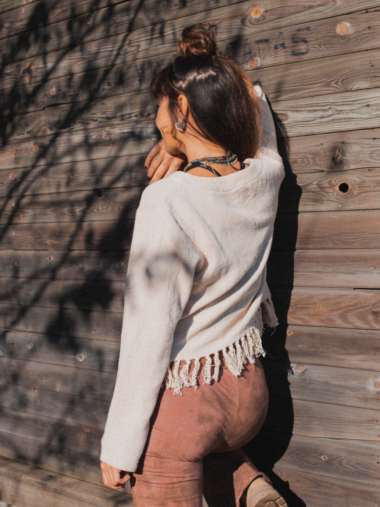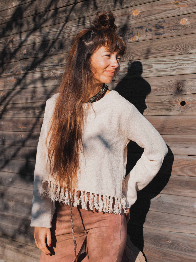 Tiene flecos en la parte de abajo, ya son un clásico para nosotras.