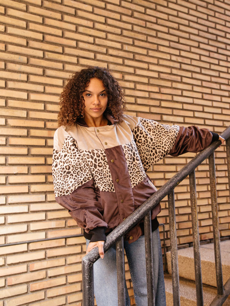 Un diseño con personalidad arrolladora que no pasa desapercibido. La combinación de print leopardo con bloques en tonos marrón chocolate y beige crea ese contraste salvaje y sofisticado que eleva cualquier look.