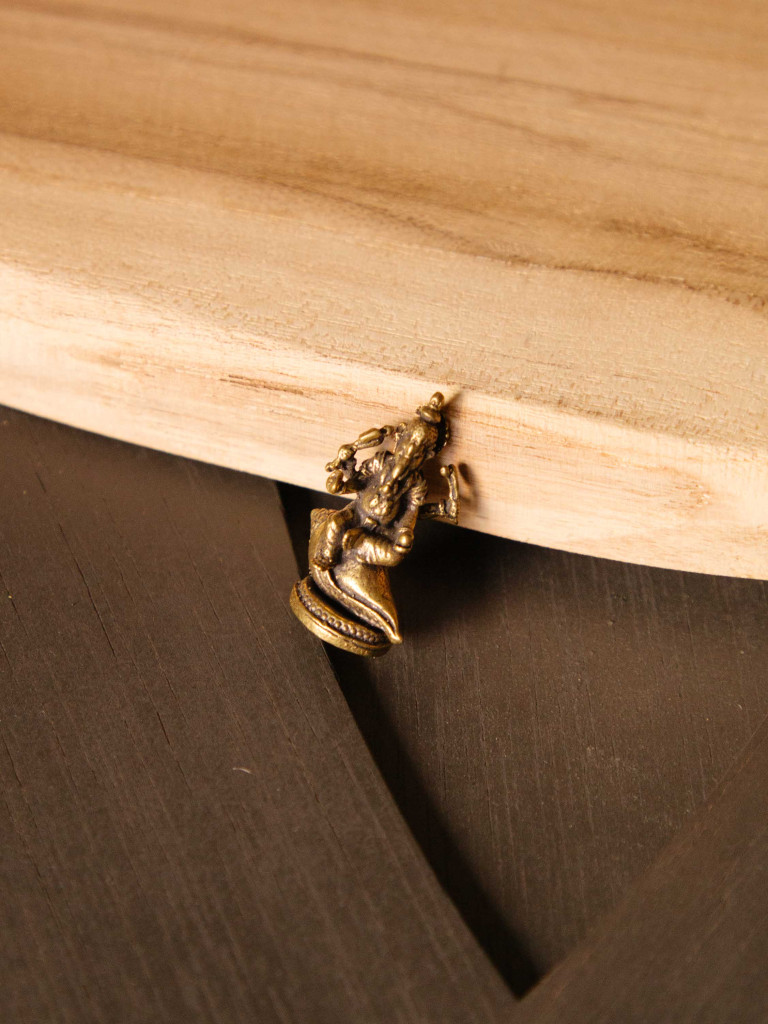 Mini figura de Ganesha elaborada en bronce, una pieza pequeña pero llena de significado espiritual. Su tamaño compacto la convierte en el amuleto perfecto para llevar contigo a todas partes: en el bolsillo, bolso o junto a tus llaves.