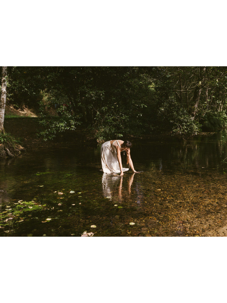 Falda larga confeccionada en algodón, diseñada para acompañar el movimiento del cuerpo con naturalidad. Presenta cierre frontal con botones de coco, un detalle orgánico que aporta carácter y autenticidad a la prenda.