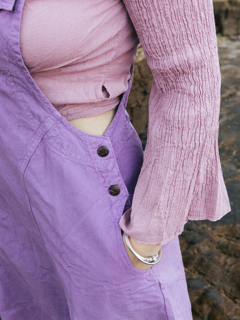 Goa está confeccionado a mano con tejido natural de algodón 100% en color lila.