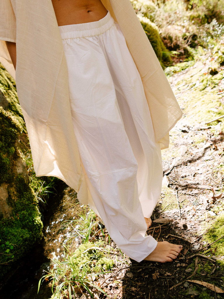 Pantalón blanco de algodón ligero, pensado para acompañarte con comodidad y estilo en el día a día. Su silueta abombada aporta un aire contemporáneo y relajado, mientras que el tejido suave y transpirable lo hace perfecto para cualquier temporada.