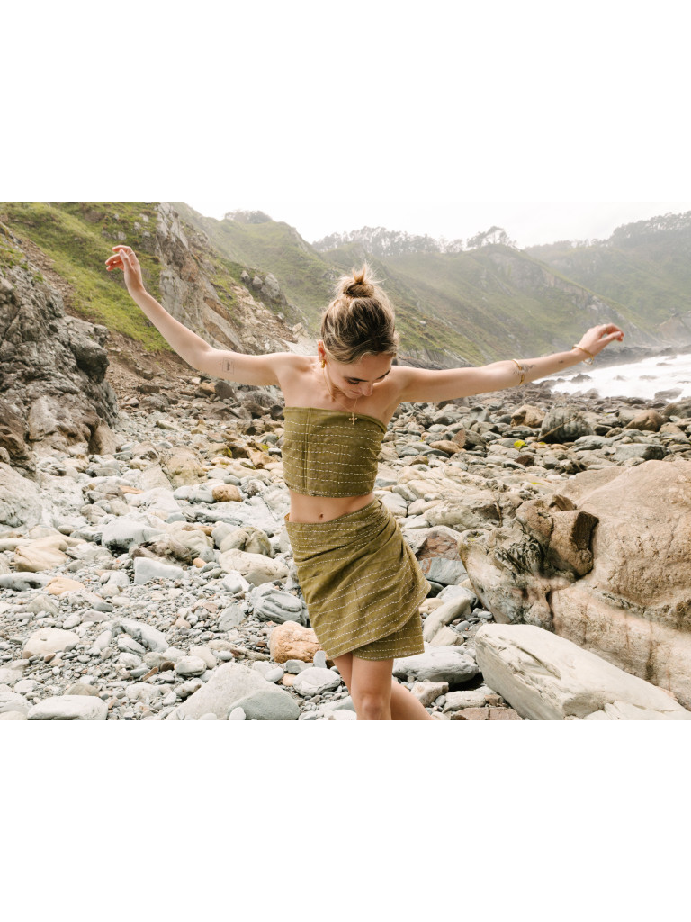 Pertenece a nuestra nueva colección cápsula; tejida en algodón orgánico y teñida con ingredientes tan puros que podrías encontrarlos en tu cocina.