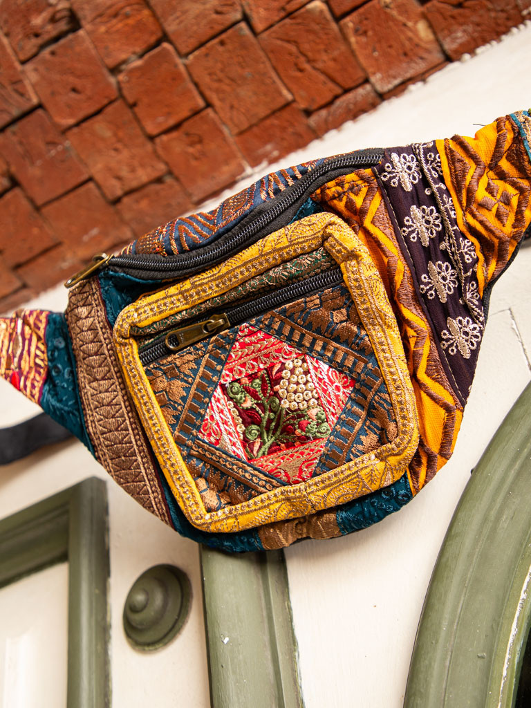 Nuestras riñoneras tesoro están elaboradas con tejidos muy especiales, bordados llenos de color y buena energía.