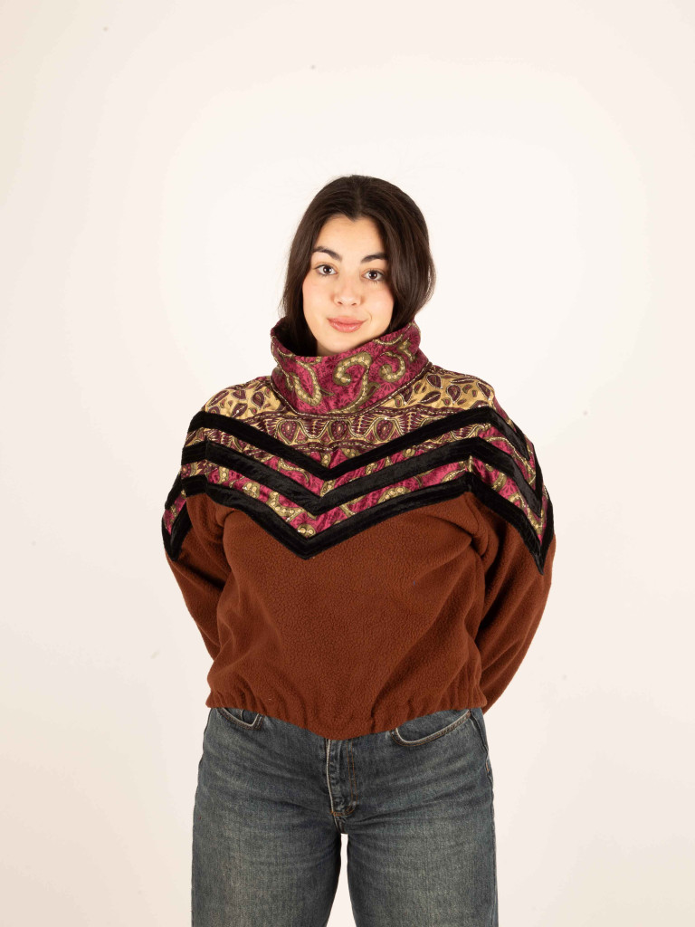 Están elaboradas con polar de color marrón y decoradas con sarees indios. Tiene elástico en los puños de las mangas y en la cintura.