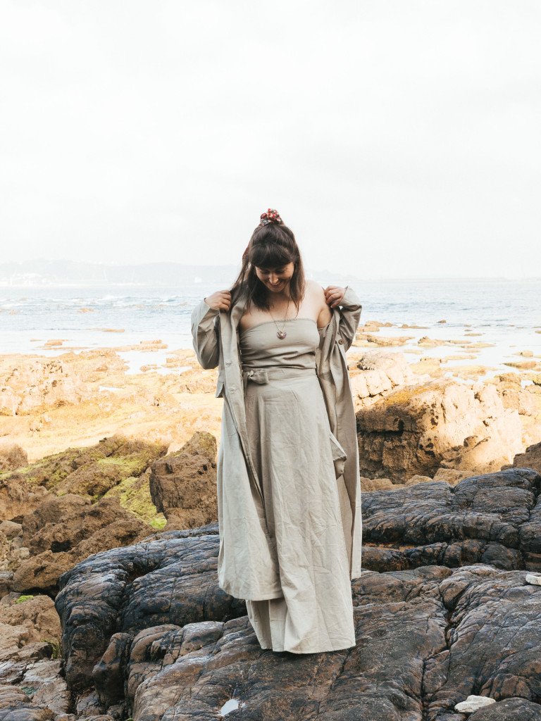 Lo hemos dotado de pinzas en la cintura que le da un corte especial y botones de coco.