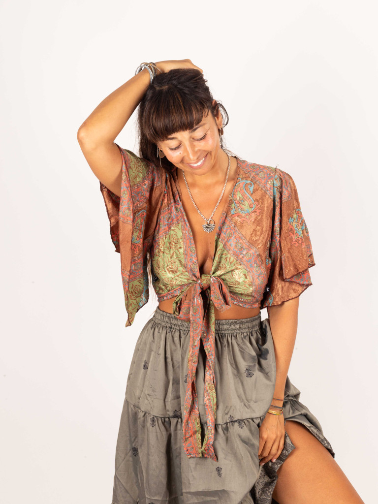 Tras la selección de sarees reciclados  confeccionamos este top perfecto para el verano.