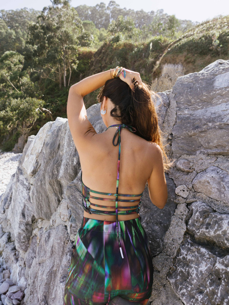 Tiene un diseño especial en la espalda: escote con tiras cruzadas que aportan un toque sexy y original, ideal para dejarte llevar bajo el sol o moverte con confianza.