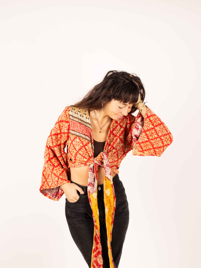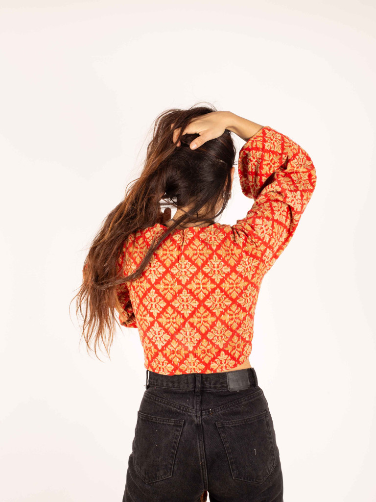 Nuestro Top RECYCLED está confeccionado a partir de colchas jaipur recicladas (100% algodón), cuidadosamente seleccionadas para darles una nueva vida 🌿