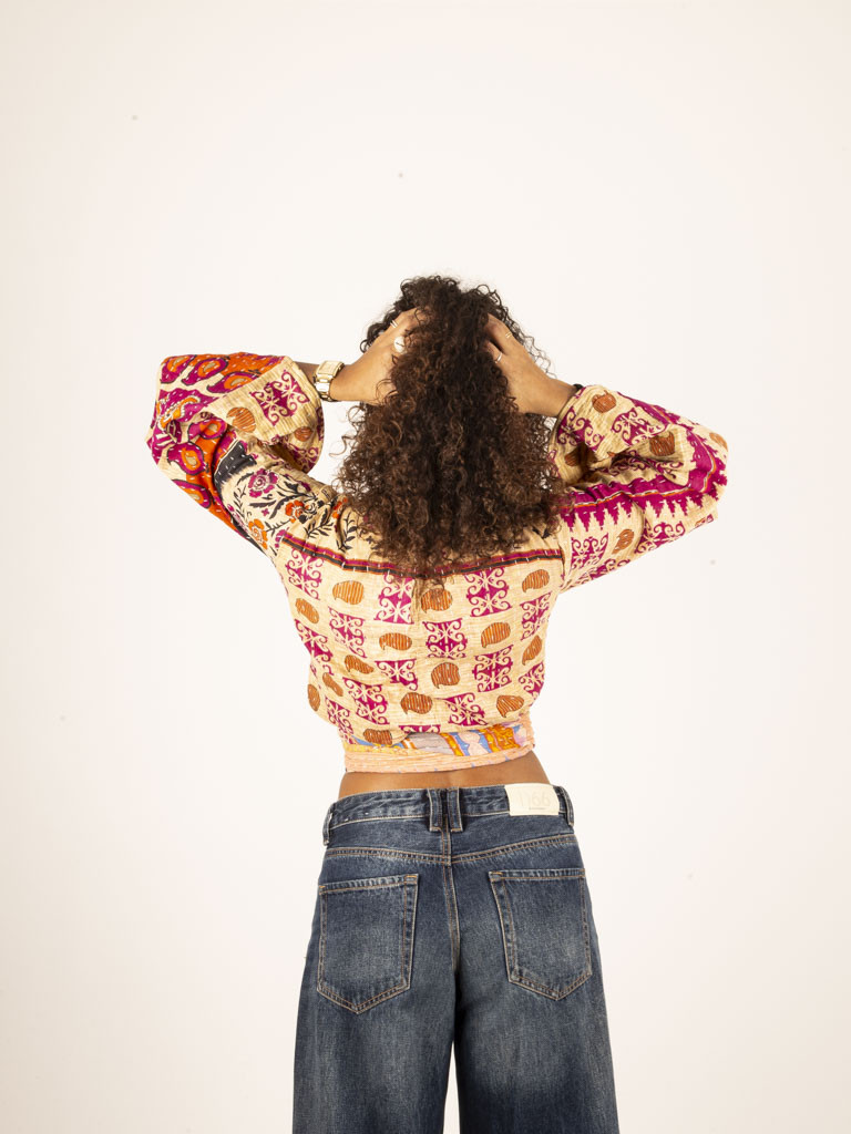 Nuestro Top RECYCLED está confeccionado a partir de colchas jaipur recicladas (100% algodón), cuidadosamente seleccionadas para darles una nueva vida 🌿